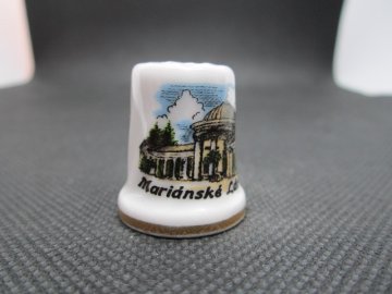 Sběratelský porcelánový náprstek - Mariánské Lázně - bílý, zn. Porceleine Fine Chodov. Náprstek je značený, bez otluků a prasklin.