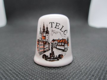Sběratelský náprstek - Telč - náměstí Zachariáše z Hradce, glazovaná keramika. Náprstek je bez otluků a prasklin.