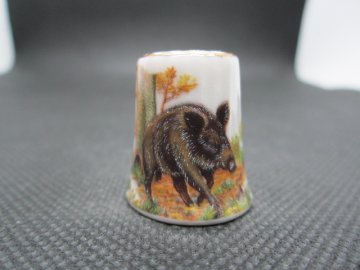 Sběratelský porcelánový náprstek - Slovensko - Rajecké Teplice, s divočákem. Náprstek je bez otluků a prasklin.