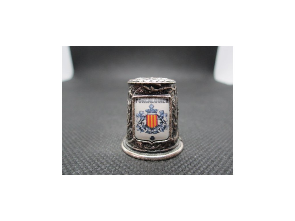 Sběratelský náprstek - 3D Francie - Forcalquier, znak, bílý kov, zdobený