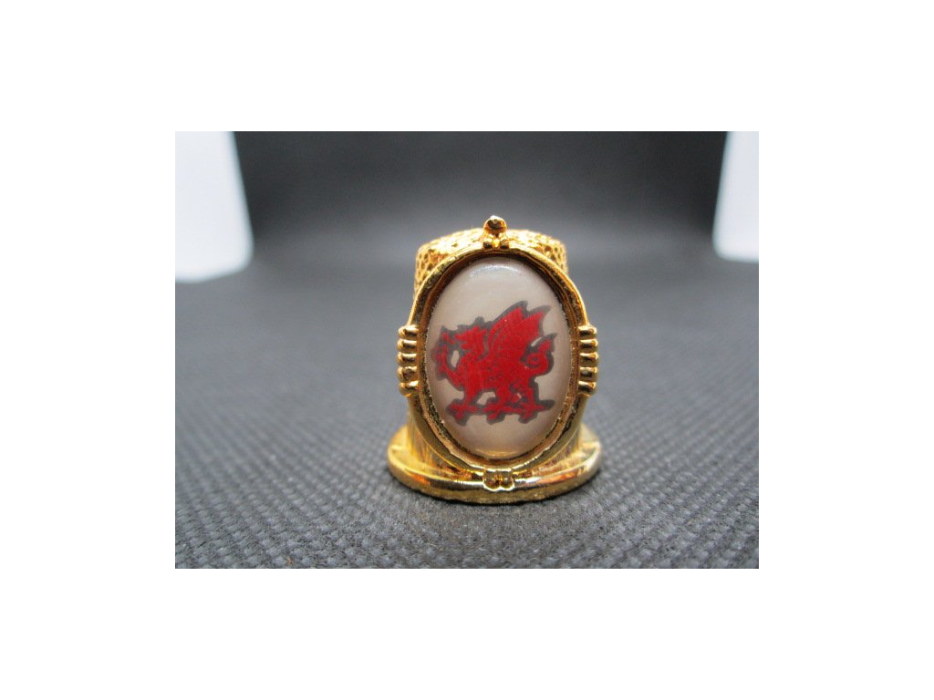 Sběratelský náprstek - 3D Wales - symbol červený drak, mosazný, masivní, zdobený, značený