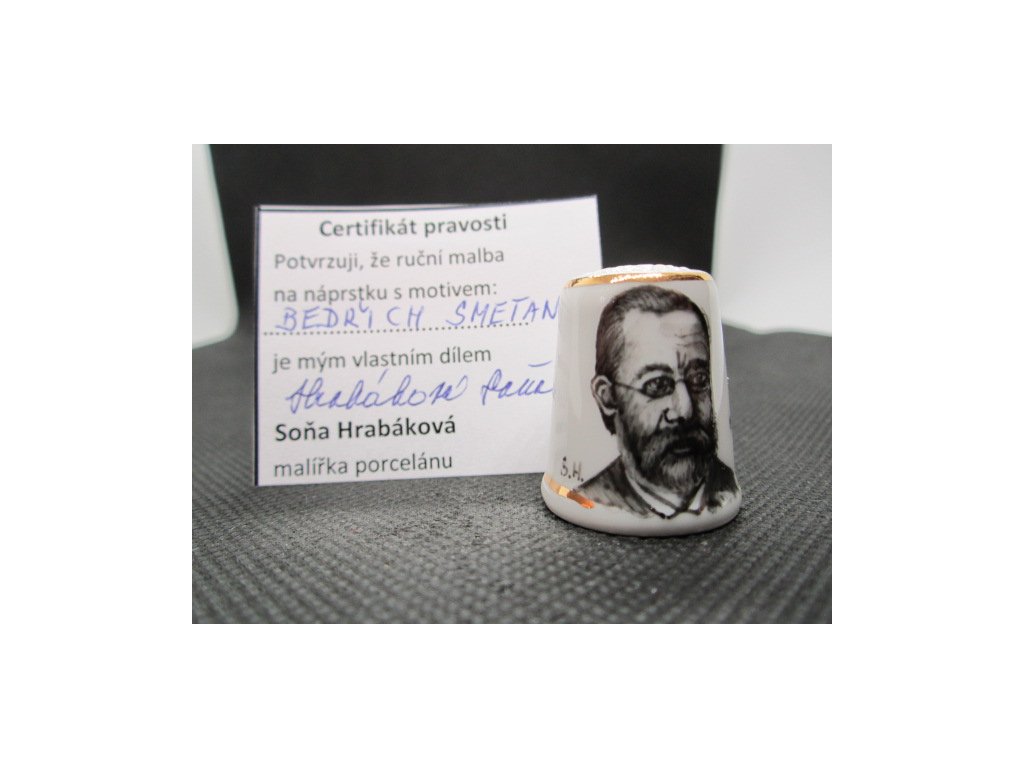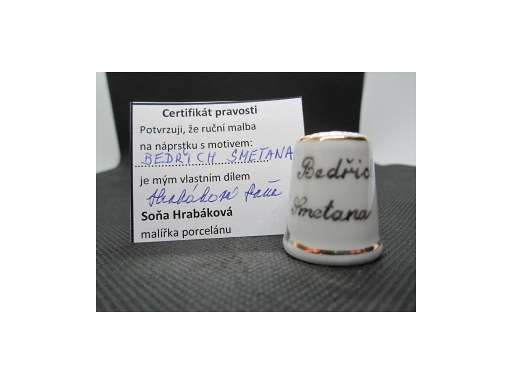 Sběratelský náprstek - Bedřich Smetana - Hrabáková Soňa, s certifikátem, ruční malba