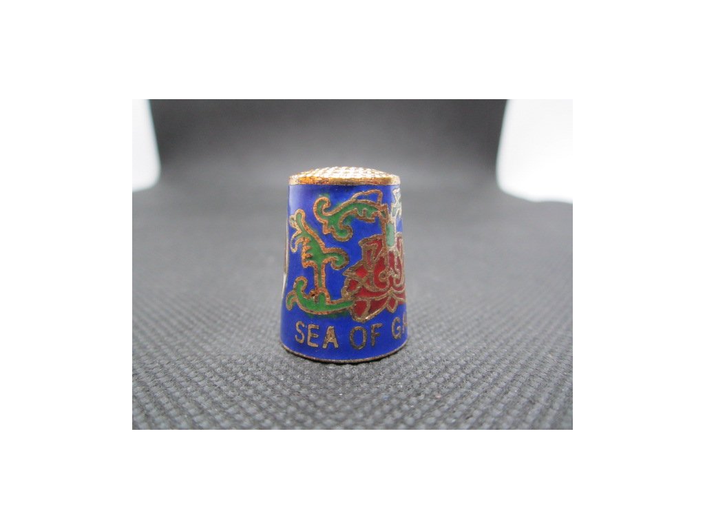 Sběratelský náprstek - Cloisonné - Izrael, Sea of Galilee, jezero, s rybami, na modré