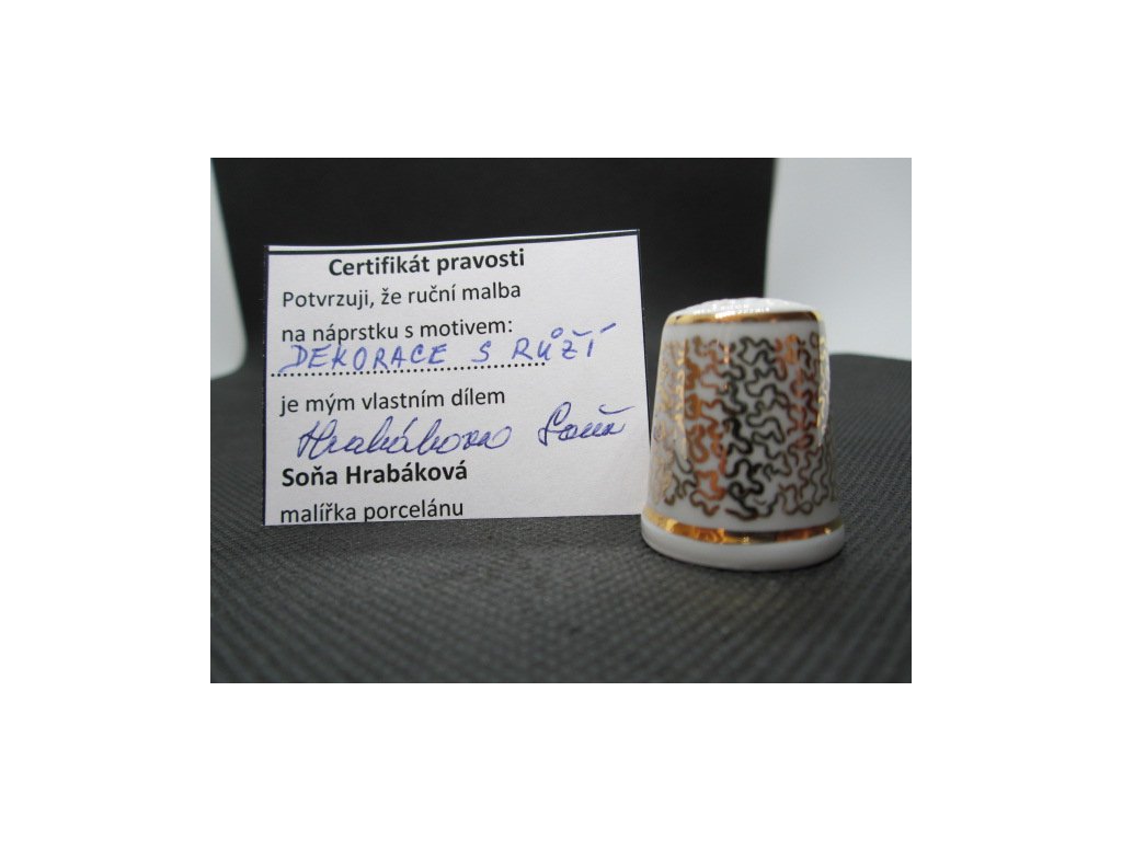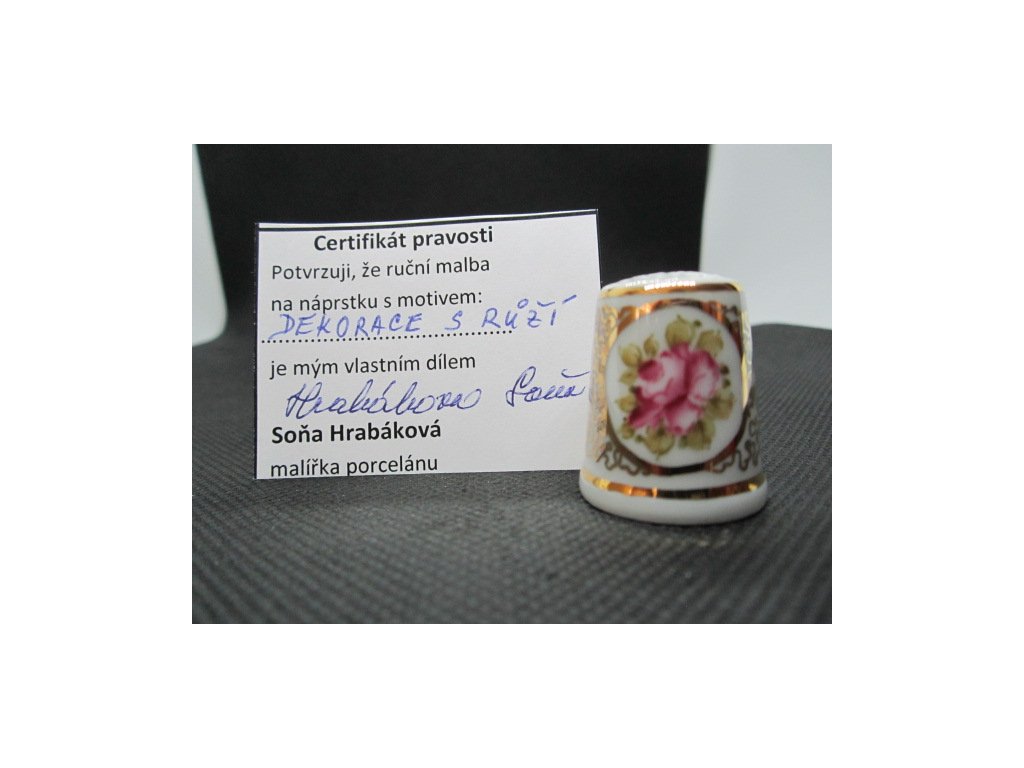 Sběratelský náprstek - Dekorace s růží - Hrabáková Soňa, s certifikátem, ruční malba