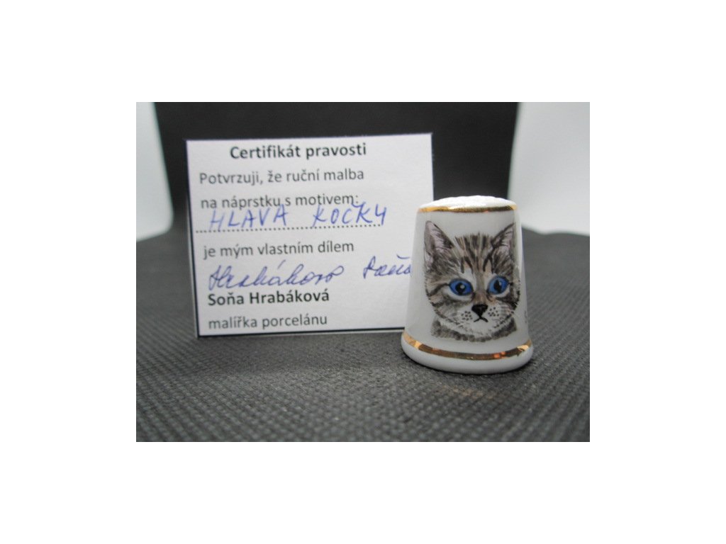 Sběratelský náprstek - Hlava kočky - Hrabáková Soňa, s certifikátem, ruční malba