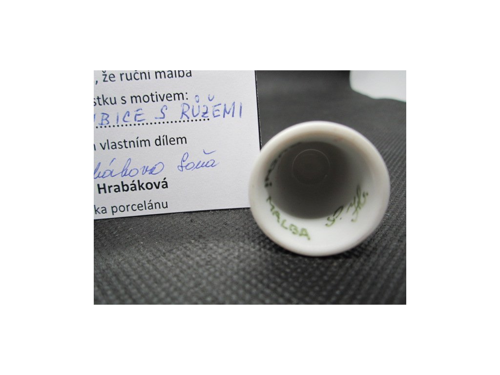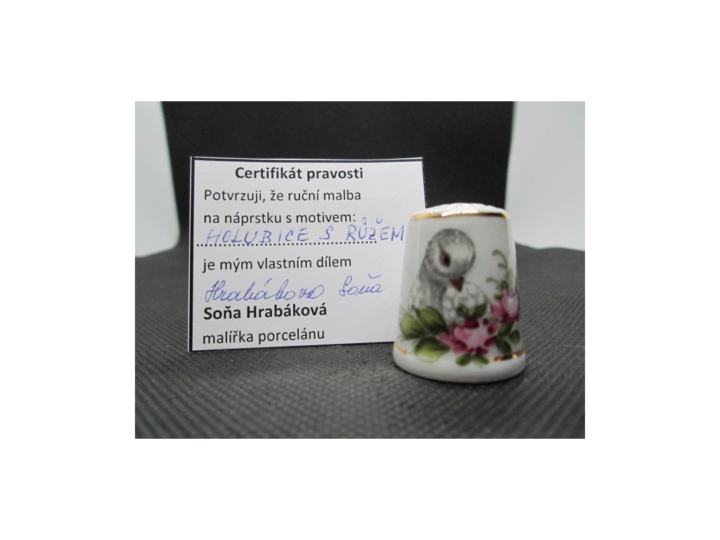 Sběratelský náprstek - Holubice s růžemi - Hrabáková Soňa, s certifikátem, ruční malba