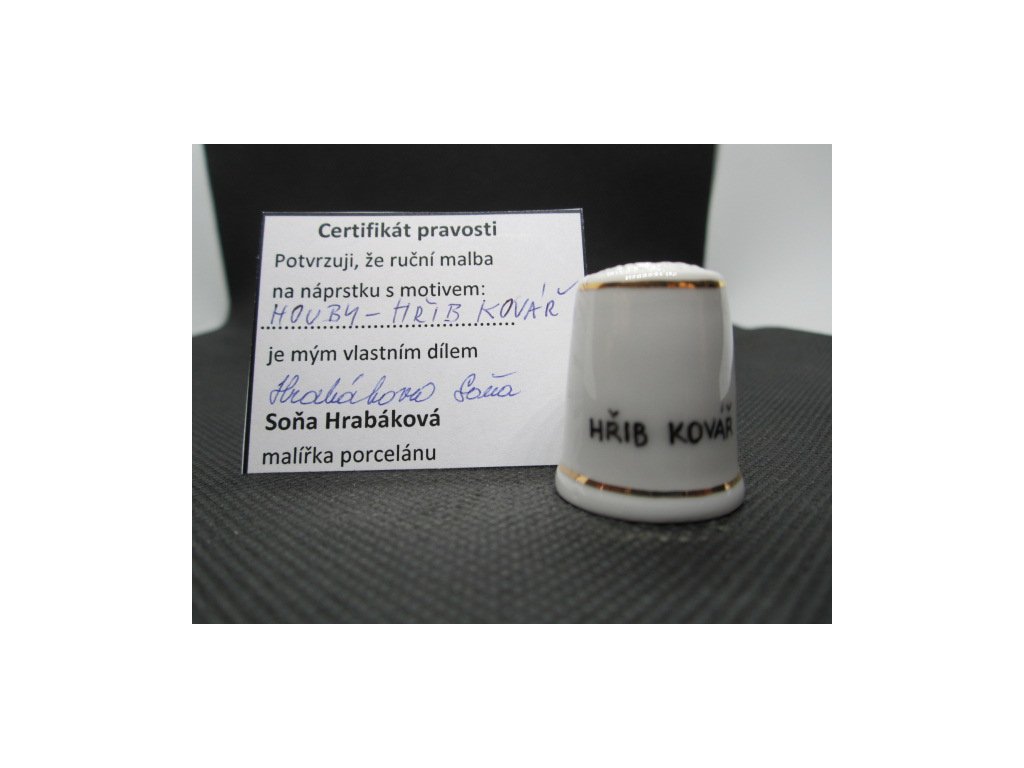 Sběratelský náprstek - Houby - Hřib kovář - Hrabáková Soňa, s certifikátem, ruční malba
