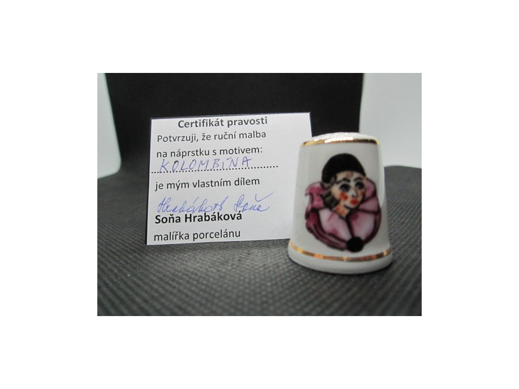 Sběratelský náprstek - Kolombína - Hrabáková Soňa, s certifikátem, ruční malba