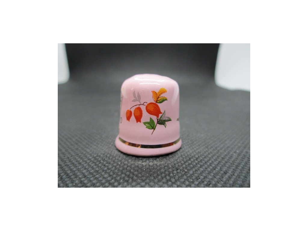 Sběratelský náprstek - Macocha - s květy, růžový, glazovaná keramika