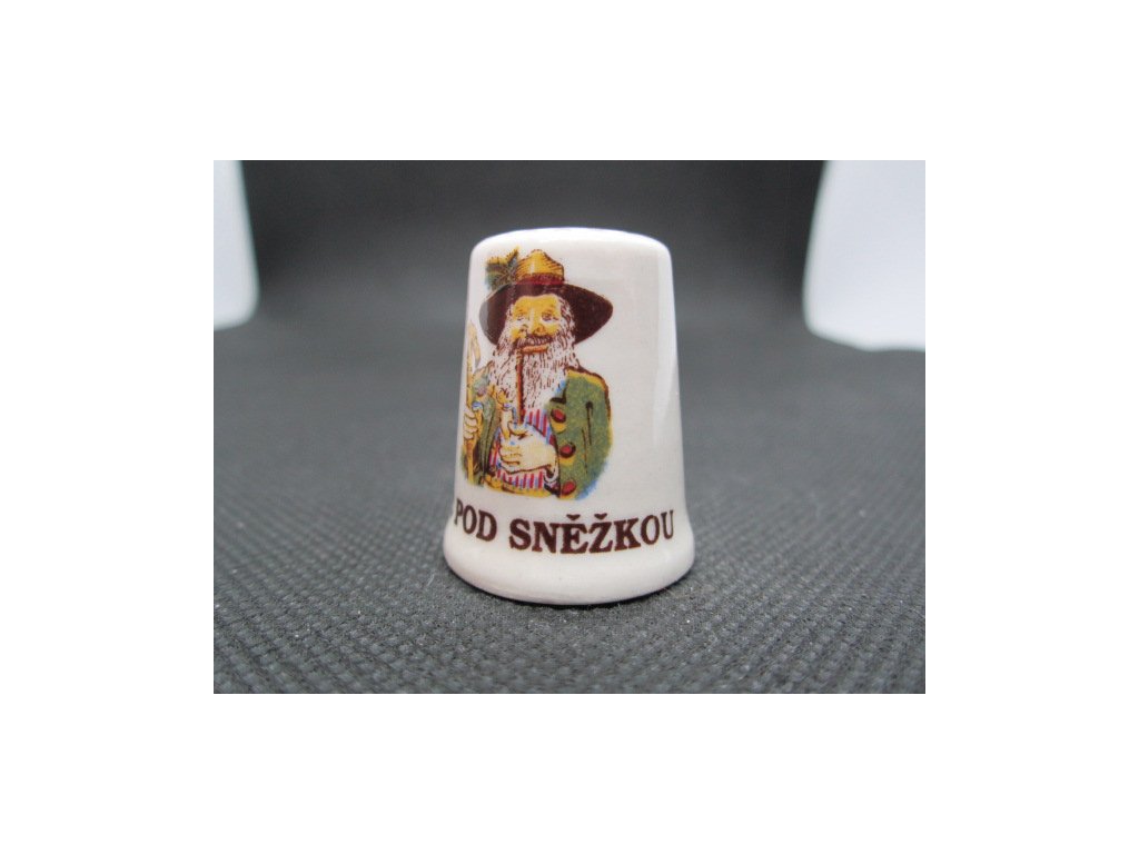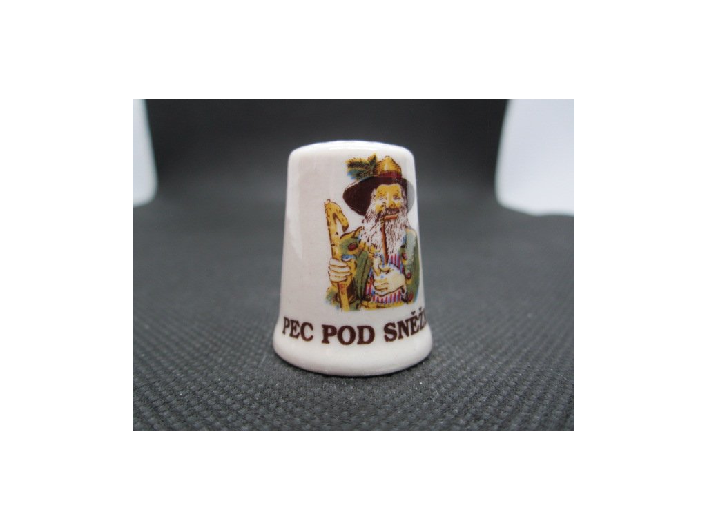 Sběratelský náprstek - Pec pod Sněžkou - s Krakonošem, glazovaná keramika, bílý