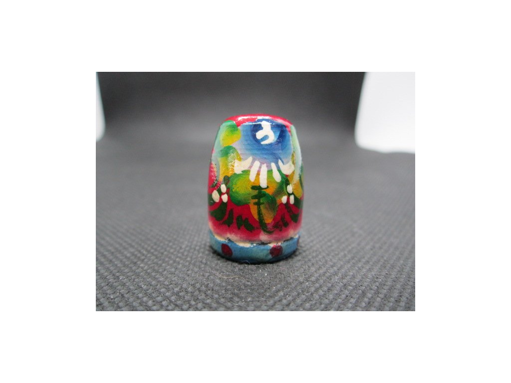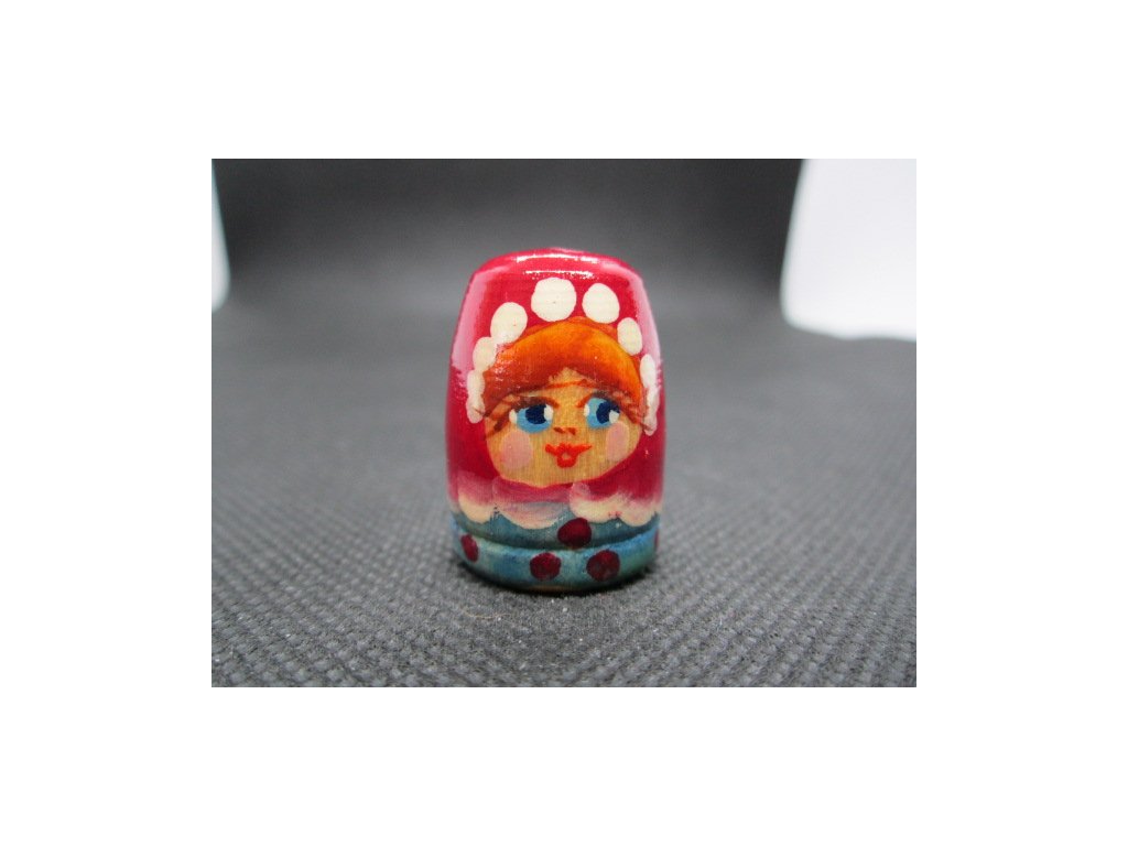 Sběratelský náprstek - Rusko - matrjoška na červené, ruční výroba a malba, dřevěný