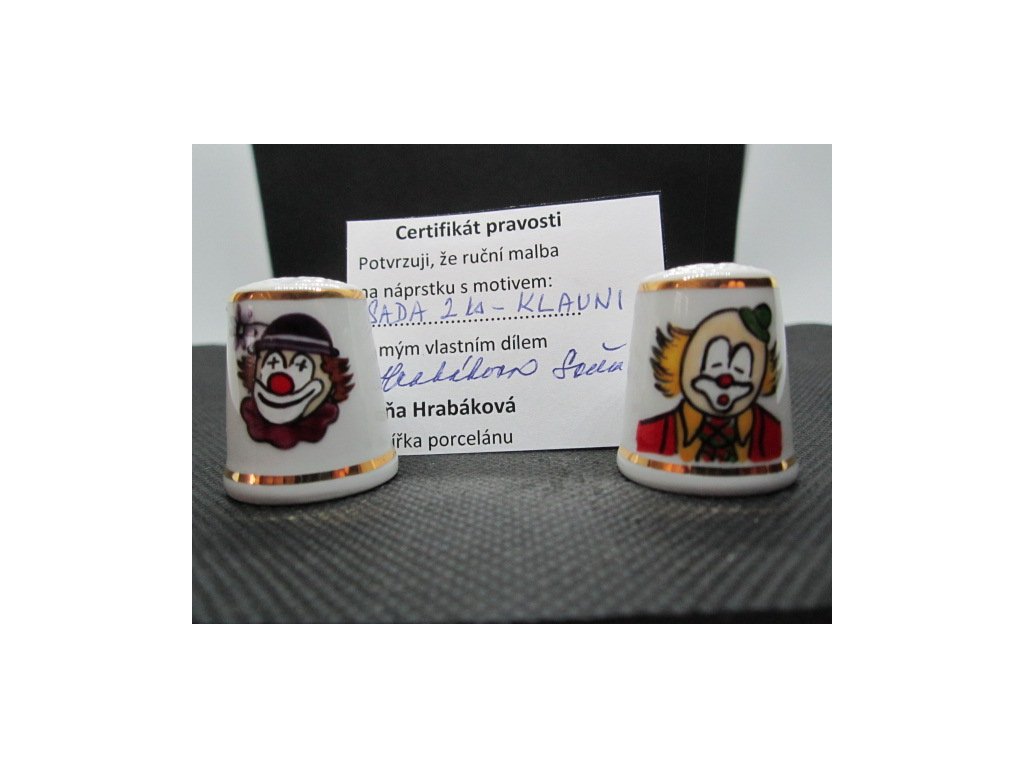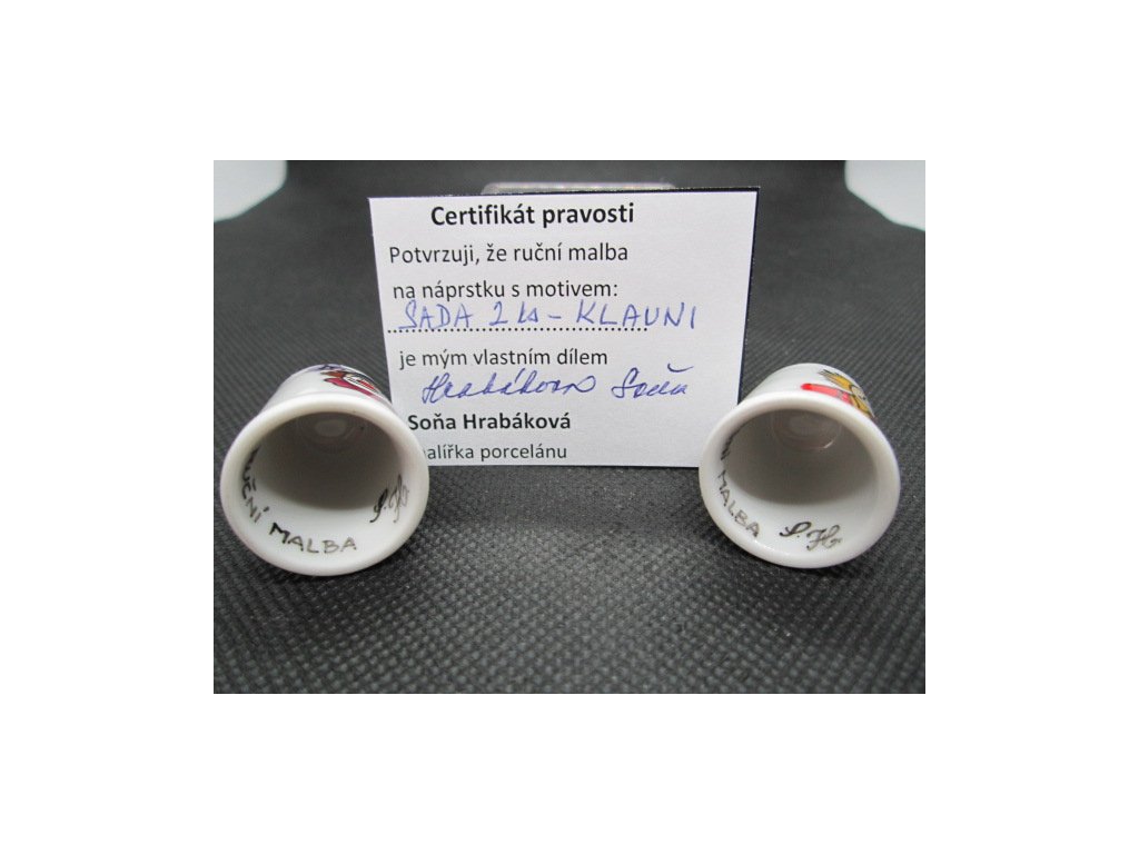 Sběratelský náprstek - Sada 2 ks - Klauni - Hrabáková Soňa, s certifikátem, ruční malba
