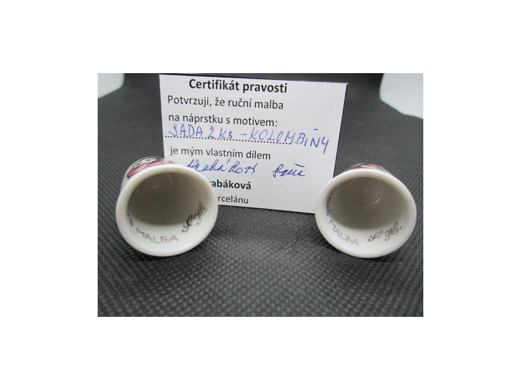 Sběratelský náprstek - Sada 2 ks - Kolombíny - Hrabáková Soňa, s certifikátem, ruční malba