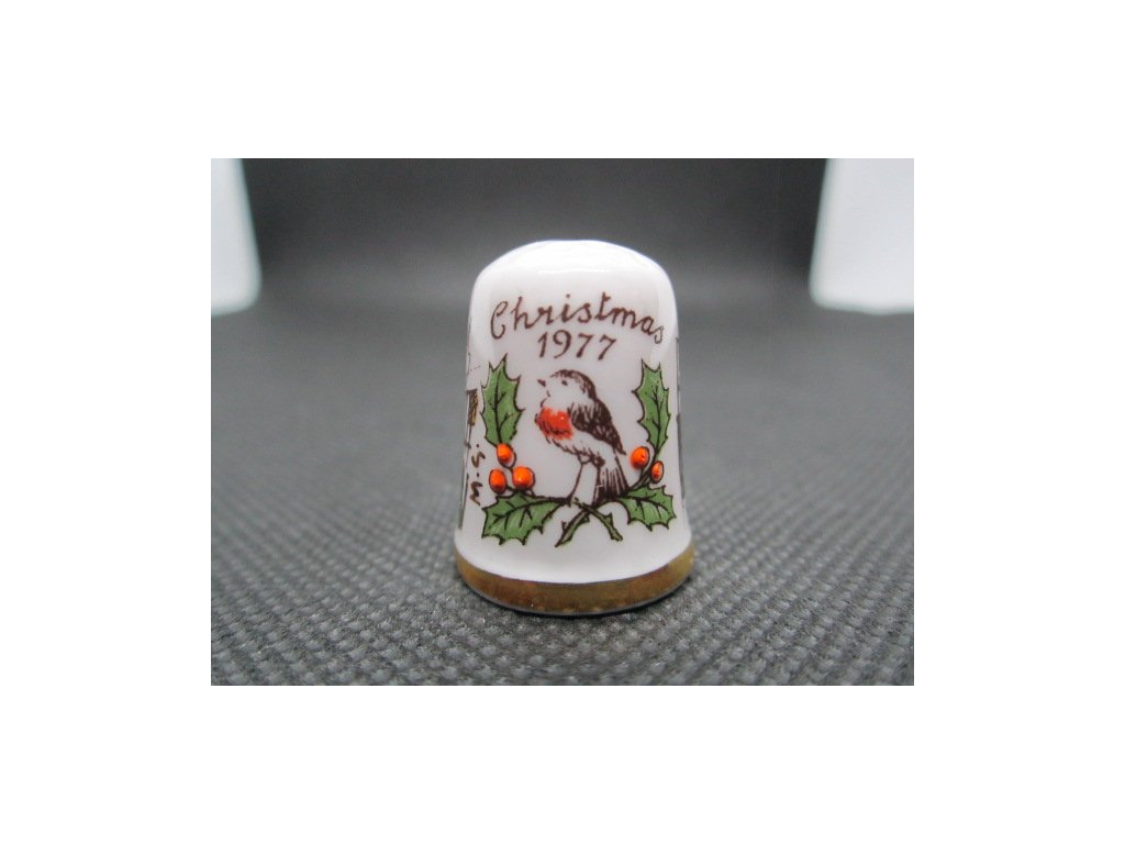 Sběratelský náprstek - TCC Caverswall England - Vánoce 1977, ruční malba, podpis autora
