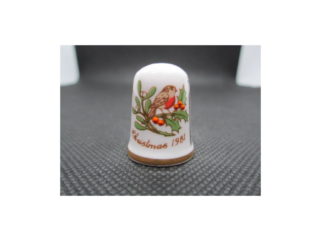 Sběratelský náprstek - TCC Caverswall England - Vánoce 1981, ruční malba, podpis autora