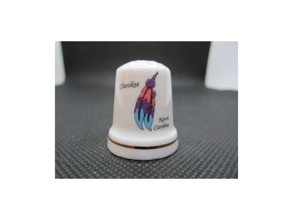 Sběratelský náprstek - USA North Carolina - Cherokee, s indiánským peřím