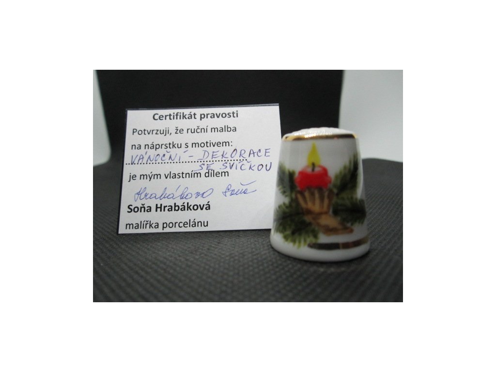 Sběratelský náprstek - Vánoční - dekorace se svíčkou - Hrabáková Soňa, s certifikátem, ruční malba