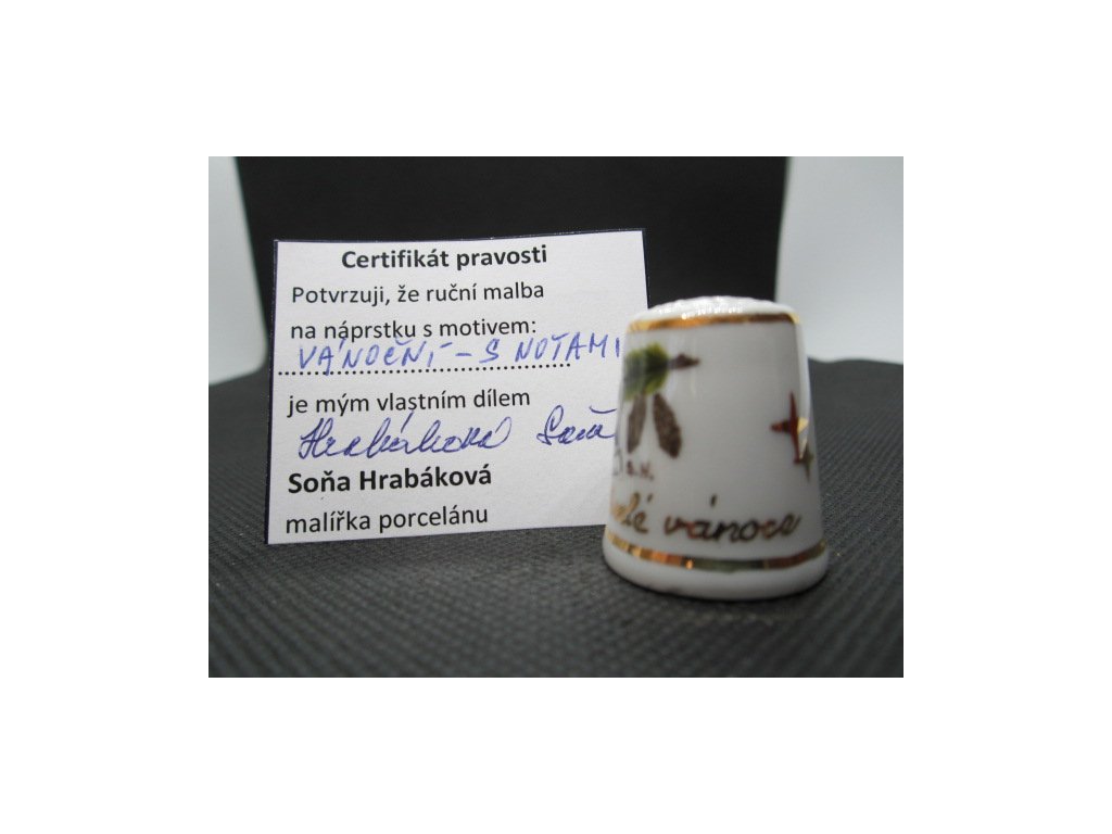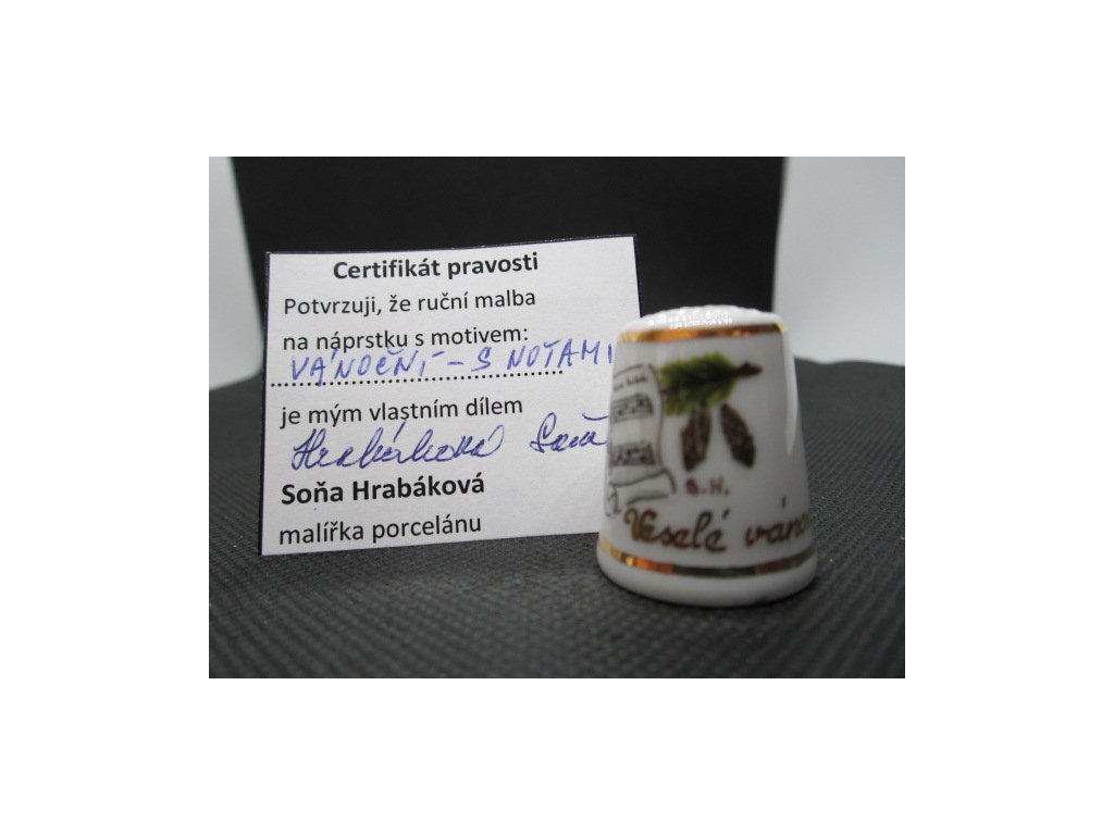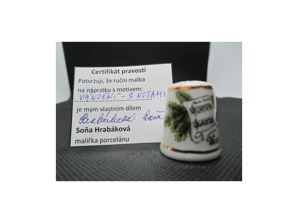 Sběratelský náprstek - Vánoční - s notami - Hrabáková Soňa, s certifikátem, ruční malba