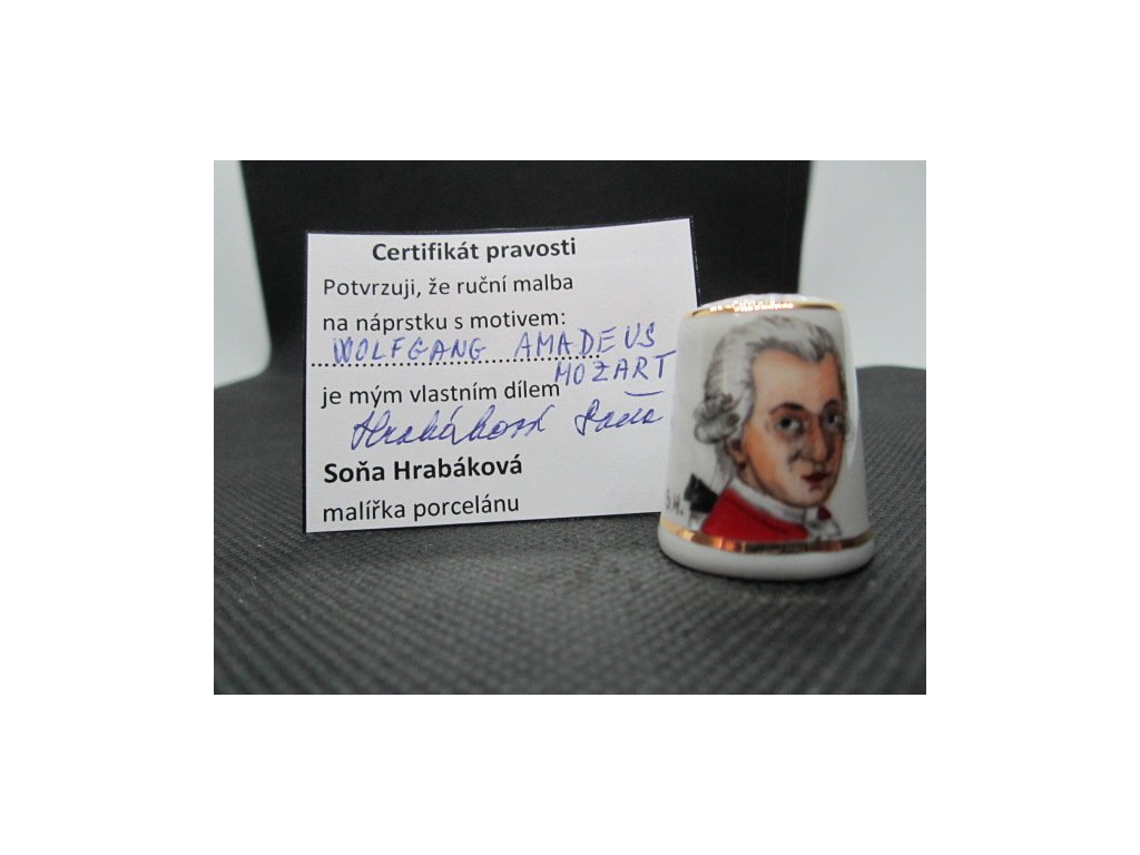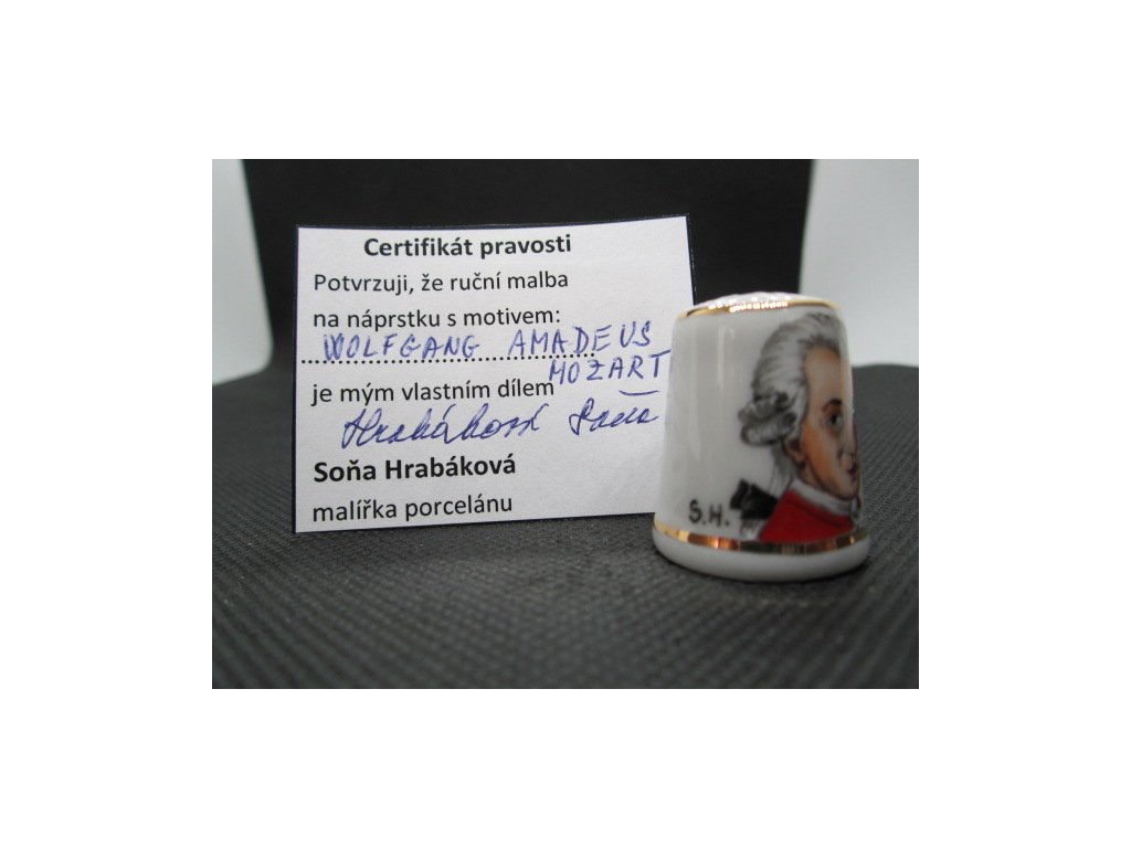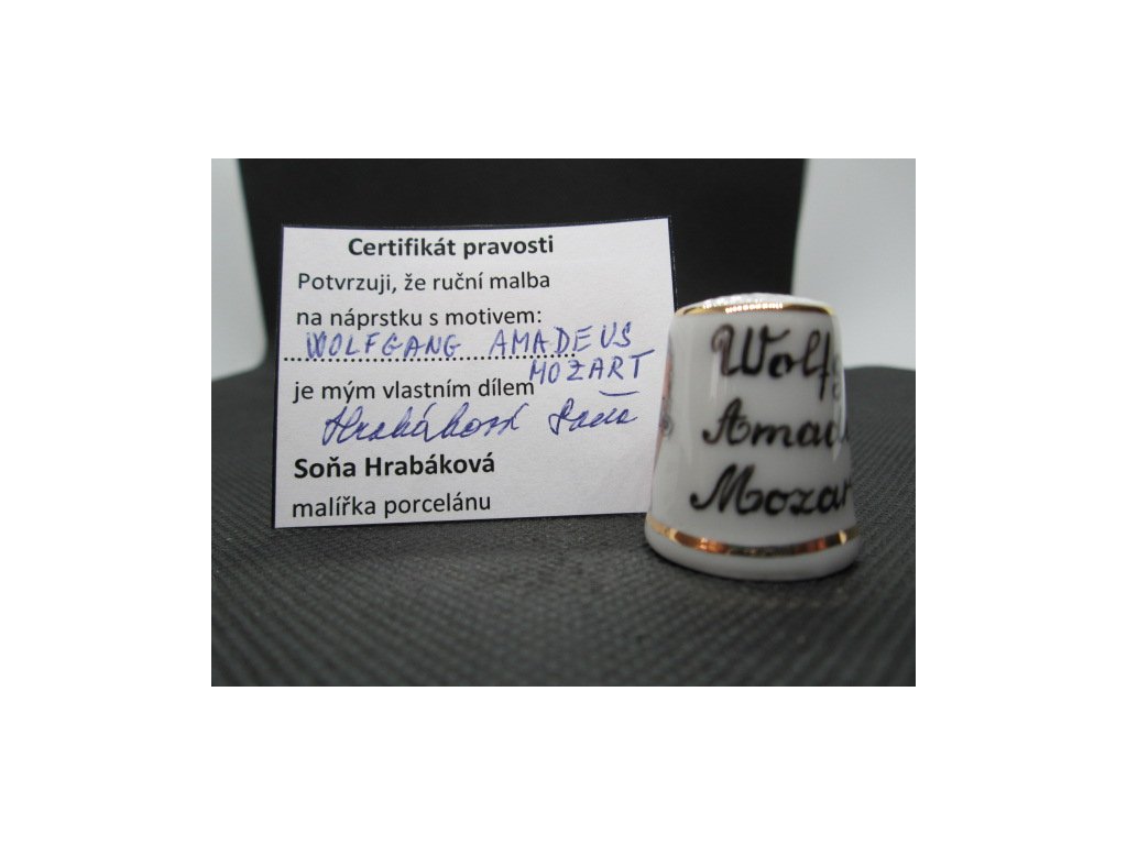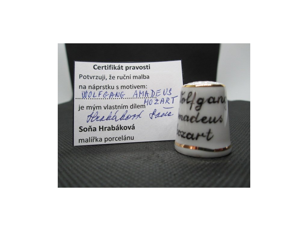 Sběratelský náprstek - Wolfgang Amadeus Mozart - Hrabáková Soňa, s certifikátem, ruční malba