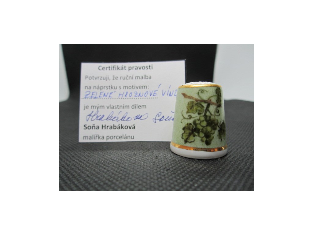 Sběratelský náprstek - Zelené hroznové víno - Hrabáková Soňa, s certifikátem, ruční malba