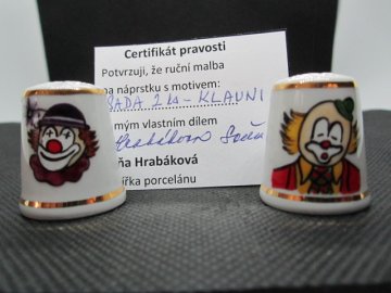 Sběratelský porcelánový náprstek - Sada 2 ks - Klauni - Hrabáková Soňa, s certifikátem, ruční malba. Náprstky jsou bez otluků a prasklin.