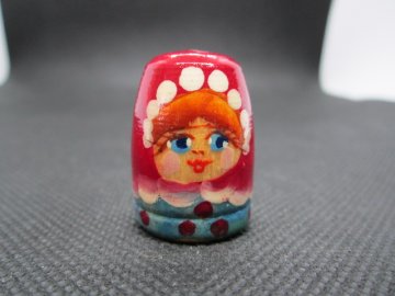 Sběratelský náprstek - Rusko - matrjoška na červené, ruční výroba a malba, dřevěný.