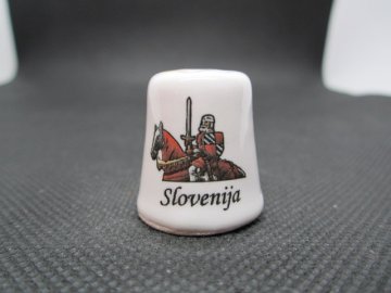 Sběratelský náprstek - Slovinsko - s rytířem, ruční výroba a malba, glazovaná keramika. Náprstek je bez otluků a prasklin.