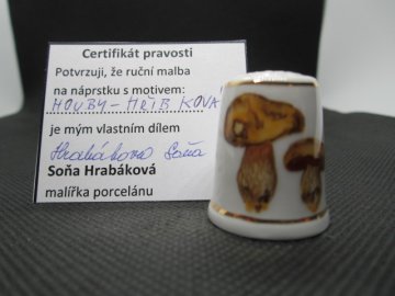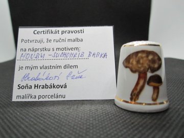 Sběratelský porcelánový náprstek - Houby - Suchohřib babka - Hrabáková Soňa, s certifikátem, ruční malba. Náprstek je bez otluků a prasklin.